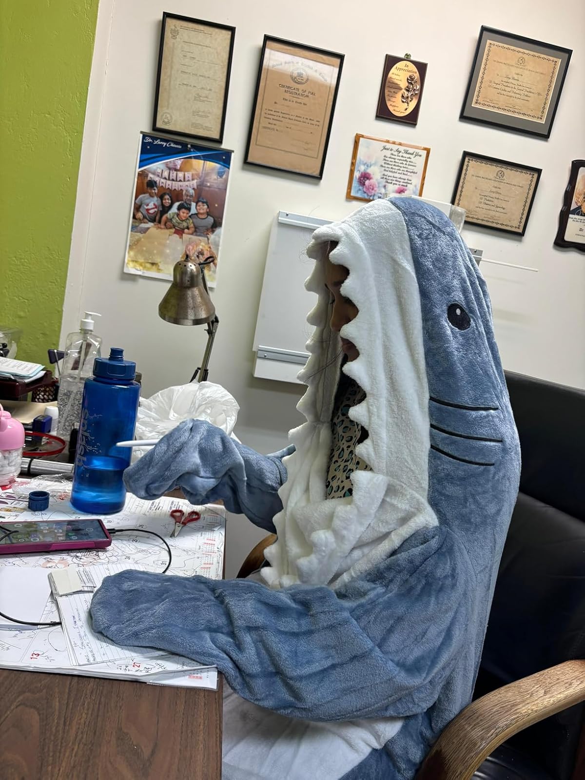 I didn't know I needed to feel like a cozy shark until now. It's ridiculous, it's comfy, and it makes me happy every time I use it. 10/10.